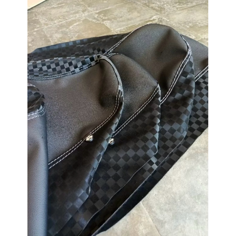 Kulit Jok Motor Kulit Jeruk Samping Catur + Logo Mbtech Sarung Jok Motor Beat, Vario, Scoopy, Mio, Pcx, Kulit Jok Model