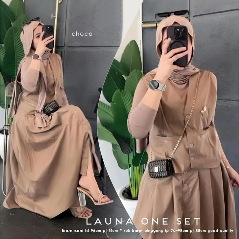Launa Set 2in1 Bahan Linen Rami Satu Set Setelan Wanita Kekinian One Set Terbaru Atasan dan Rok ELF