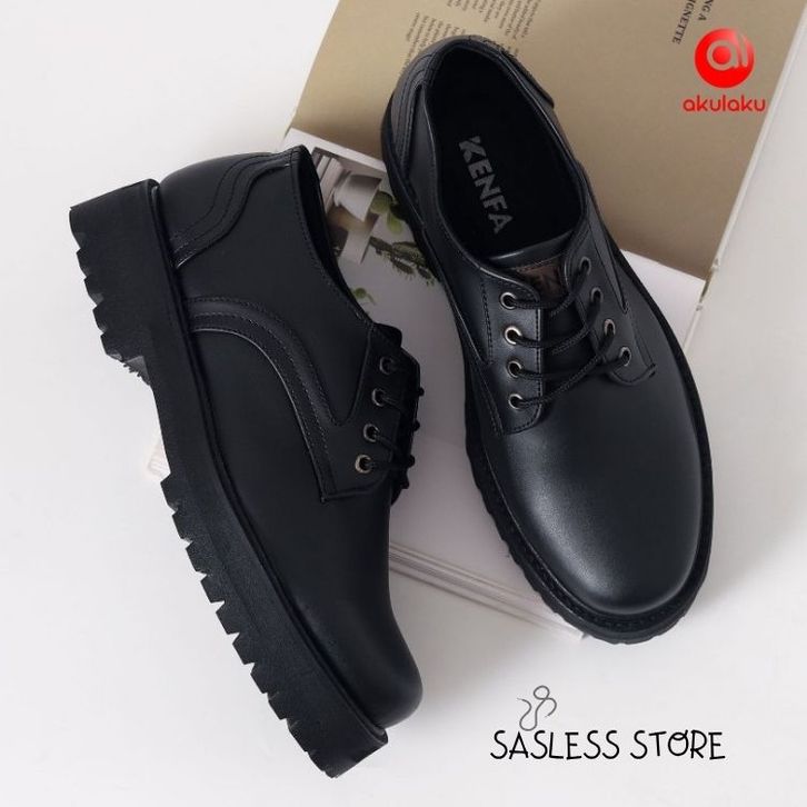 Kenfa - Siho Black Sepatu Formal Pria Wanita Casual Kerja Kantor Pantofel Oxford Doctmart Hitam