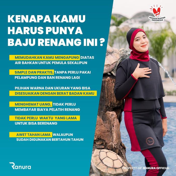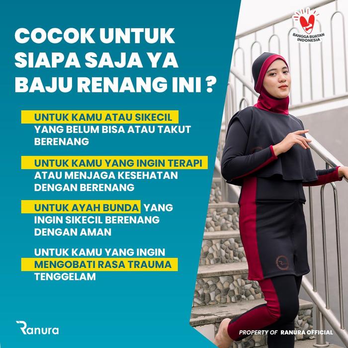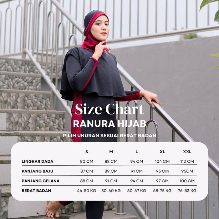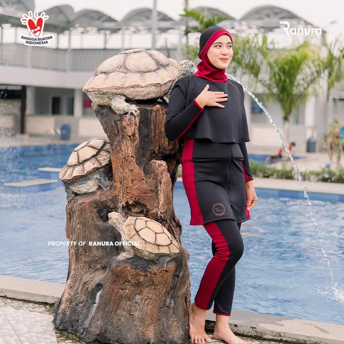 Baju Renang Muslimah Mengapung Ranura Hijab M2D Dewasa Wanita Black Maroon Panjang Remaja Syari - Black Marun, S