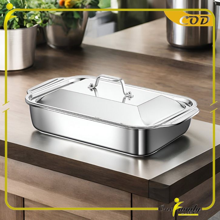 ONE-C1236 Panci Stainless Set Tutup Wadah Saji Lauk Tempat Prasmanan Luxury / Panggangan Ikan Persegi