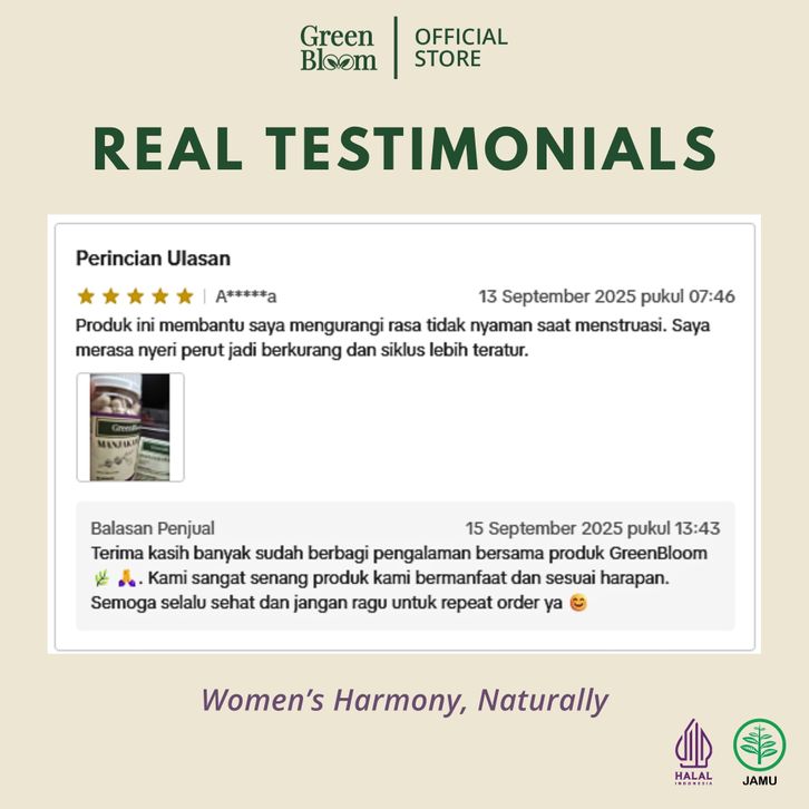 GreenBloom Manjakani - Suplemen Herbal Kesehatan Wanita Feminim 80 Kapsul @500mg Obat Herbal Alami