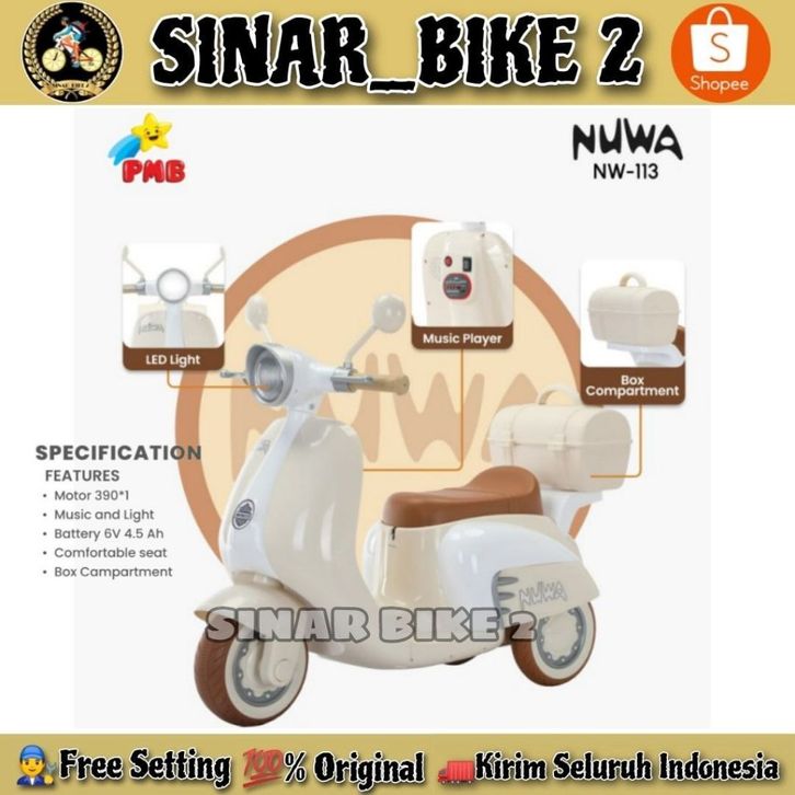 PROMO Motor Aki Anak EXOTIC EMT 2242 // PMB NUWA NW 113 // PMB NUWA 115 Vespa Mainan Anak Motoran