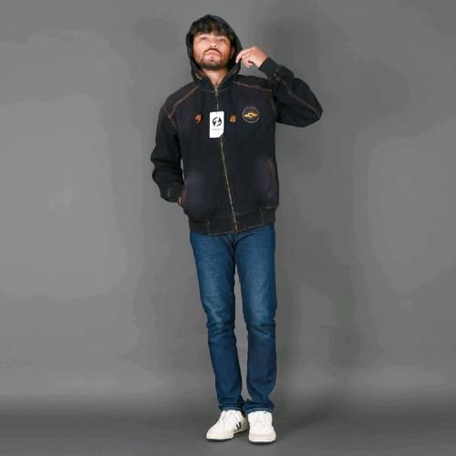 Jaket Bomber Jeans Kupluk Denim Blue Jumbo Dasar Transparent