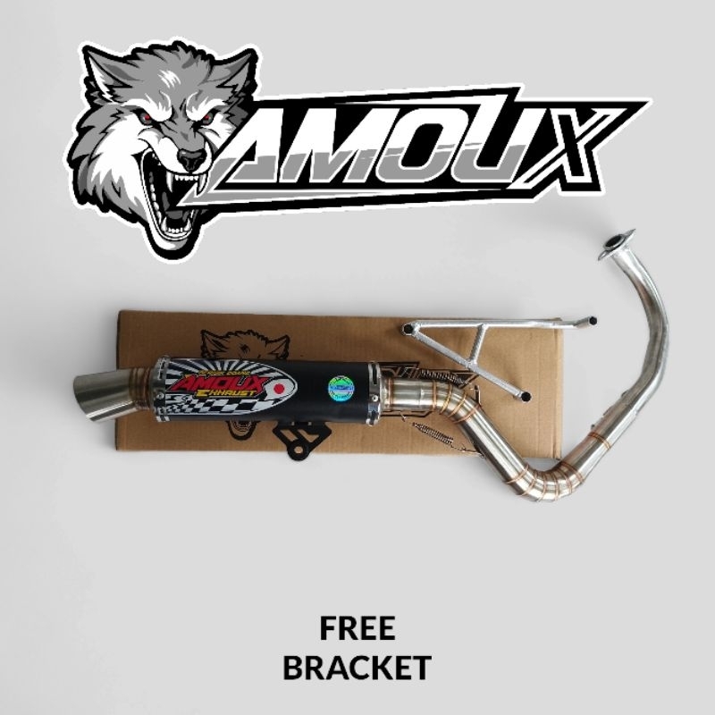 KNALPOT SAMLONG SEMI COBRA BLACK COATING ORIGINAL AMOUX (FREE BRACKET) UNTUK VARIO NMAX AEROX SCOOPY BEAT STREET GENIO M