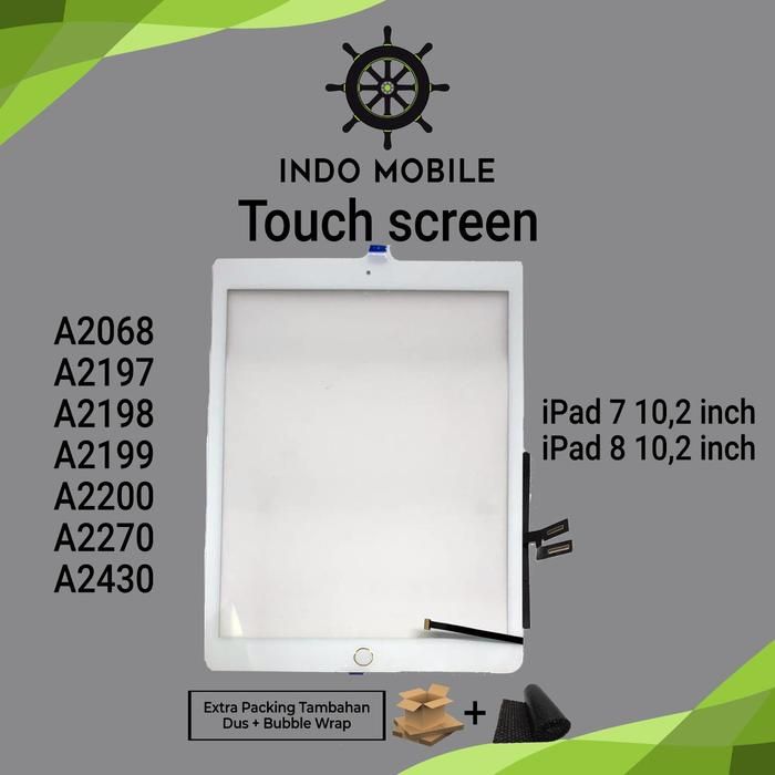 TOUCHSCREEN IPAD 7 8 10,2 A2068 A2197 A2198 A2199 A2200 A2270 A2430 - WHT+HMBUTON, TANPA DUS BUBLE