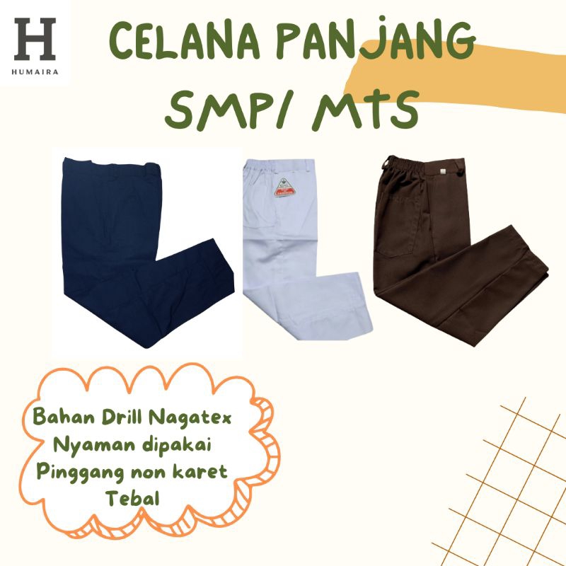 Celana Panjang Seragam SMP Warna Biru Cokelat Hitam Putih