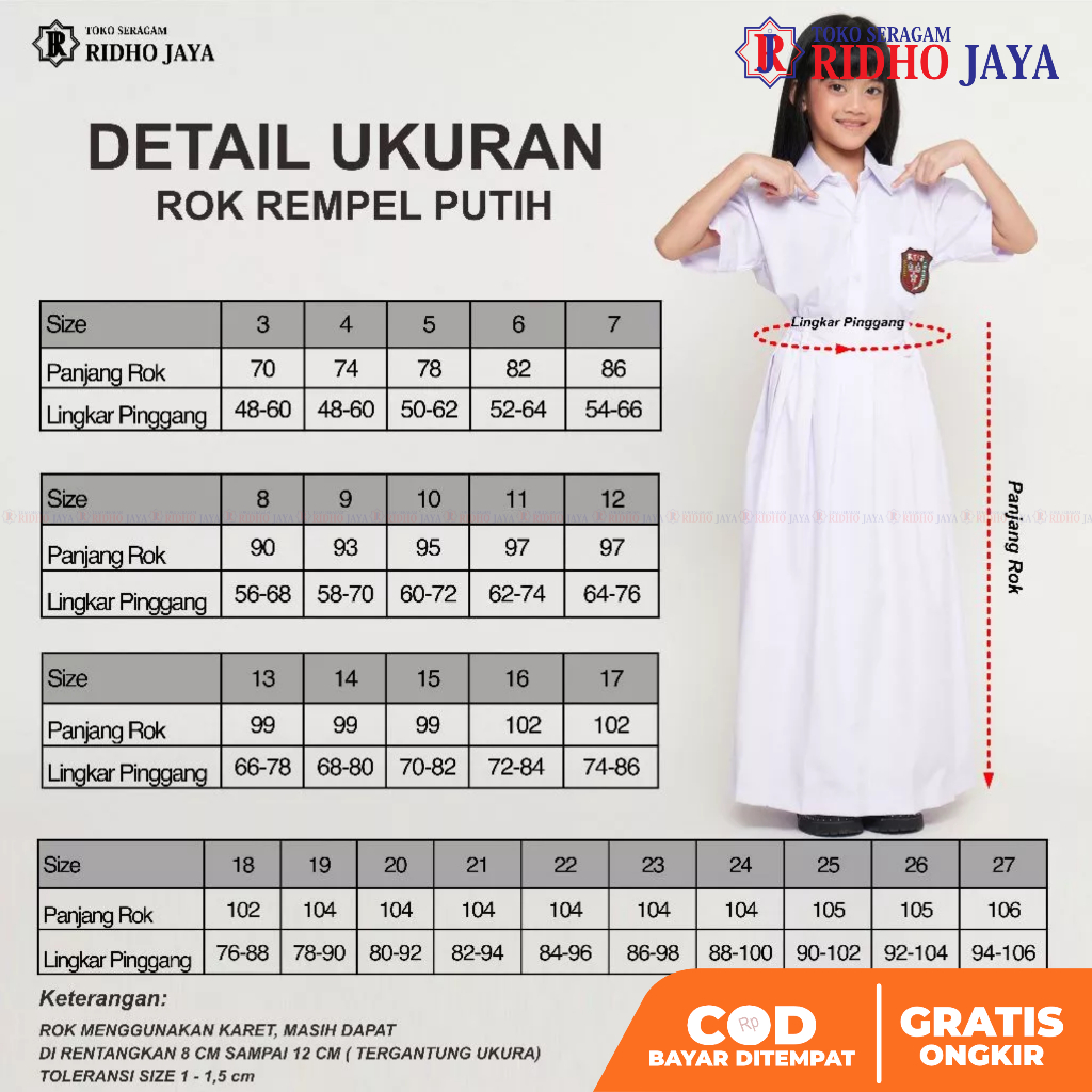 Rok Rempel Biru Benhur Karet Panjang Rok Seragam Putih SD SMP SMA Madrasah Rok Plisket Rok Dokter Kecil