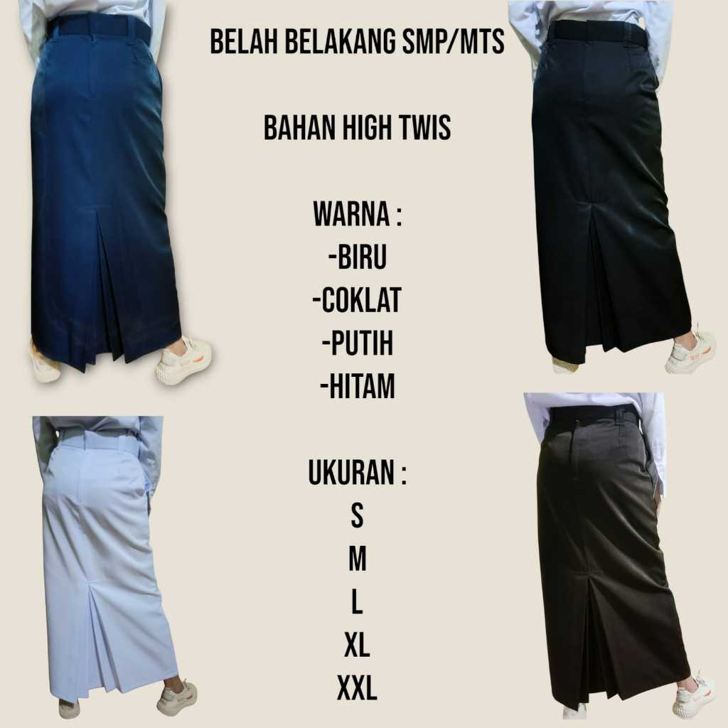 Rok seragam sekolah panjang SMP MTS belah belakang warna biru coklat hitam putih BB