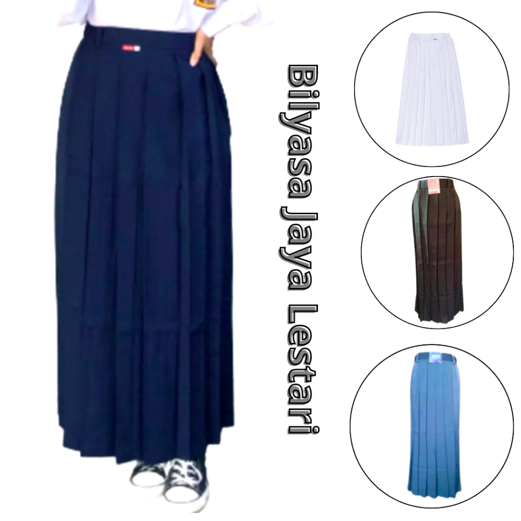 Seragam Sekolah SMP SMA SMK Rok Rempel Panjang Pinggang Karet Warna Biru Abu Putih Coklat Pramuka Bahan Dril Nagate
