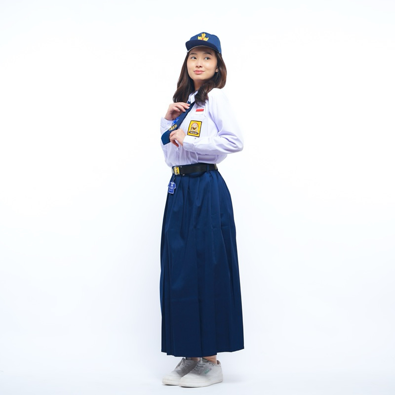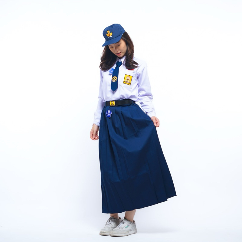 Seragam Sekolah Sanggar Ragam - Rok Rempel Panjang SMP Biru Navy Pinggang Karet