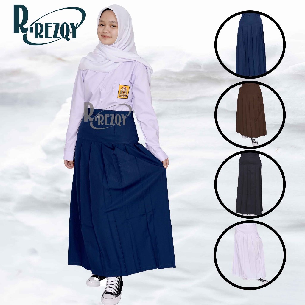 R Rezqy - Rok Smp Panjang Rempel Bawah Pinggang Seragam sekolah Smp Warna Biru Putih Hitam Coklat Pramuka