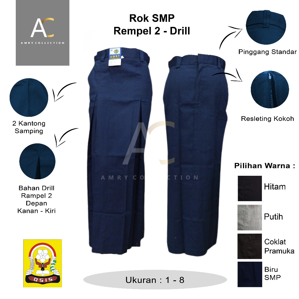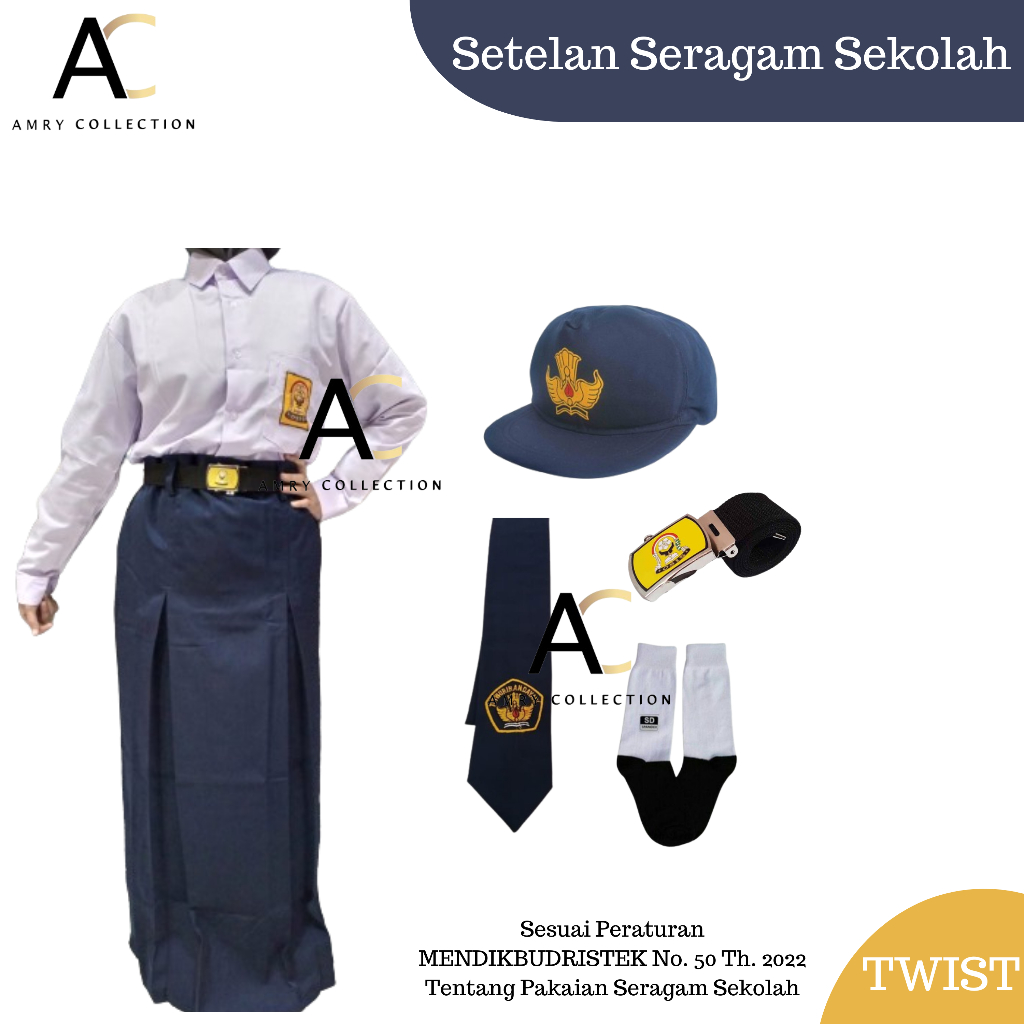 Setelan Seragam Sekolah SMP Perempuan Lengkap Baju Panjang Rok Span Rempel Belah Dua Panjang