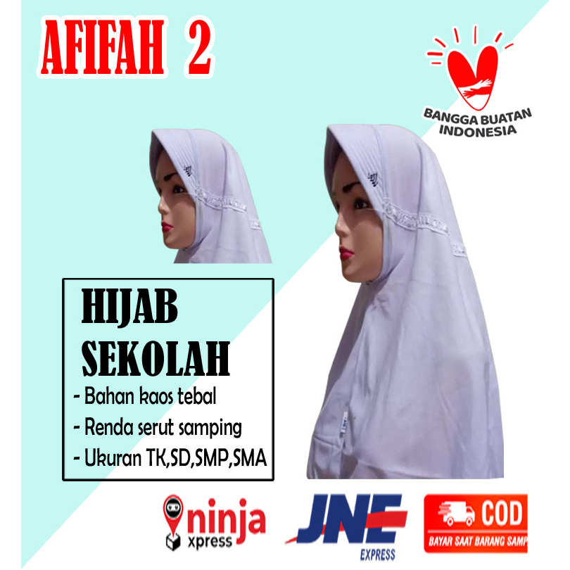 Kerudung Sekolah Murah Hijab Sekolah TK SD SMP SMA Serut Renda Samping Astri