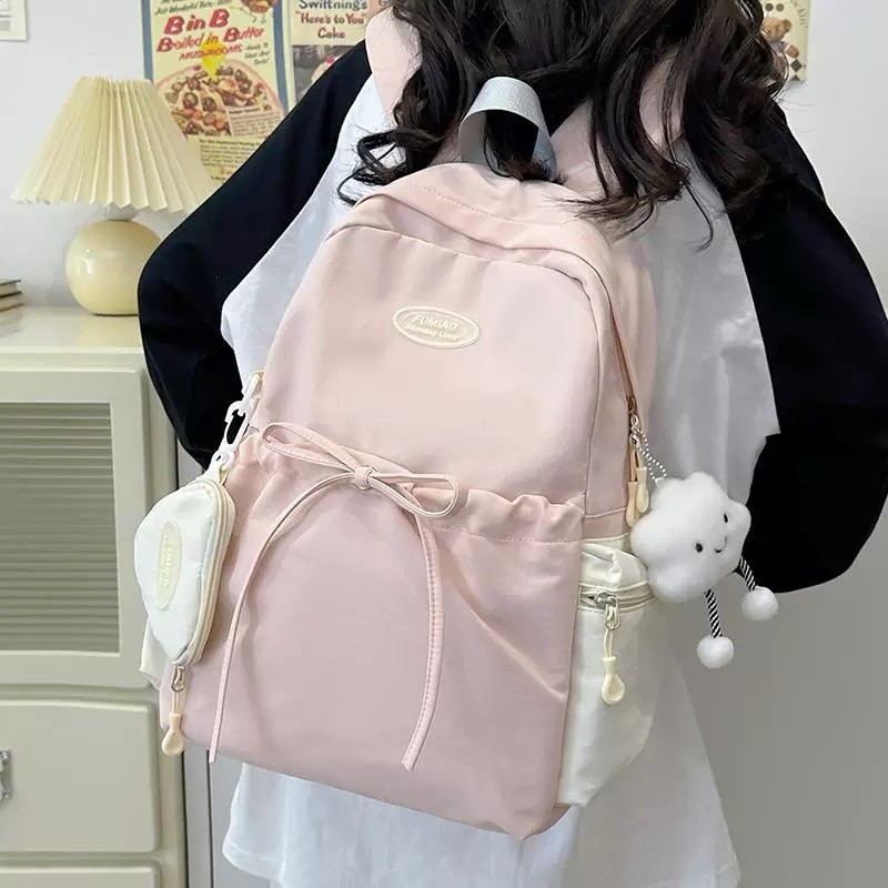 Tas Punggung Sekolah Gaya Korea Warna Solid Ringan & Berkapasitas Besar Cocok untuk SMP SMA & Perjalanan