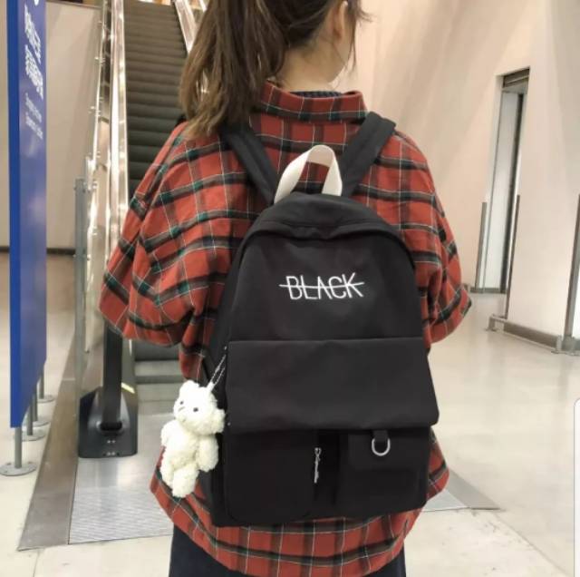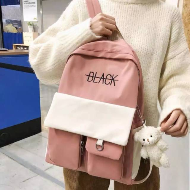 Tas Ransel Punggung Combi Black Hara Casual Fashion Korea