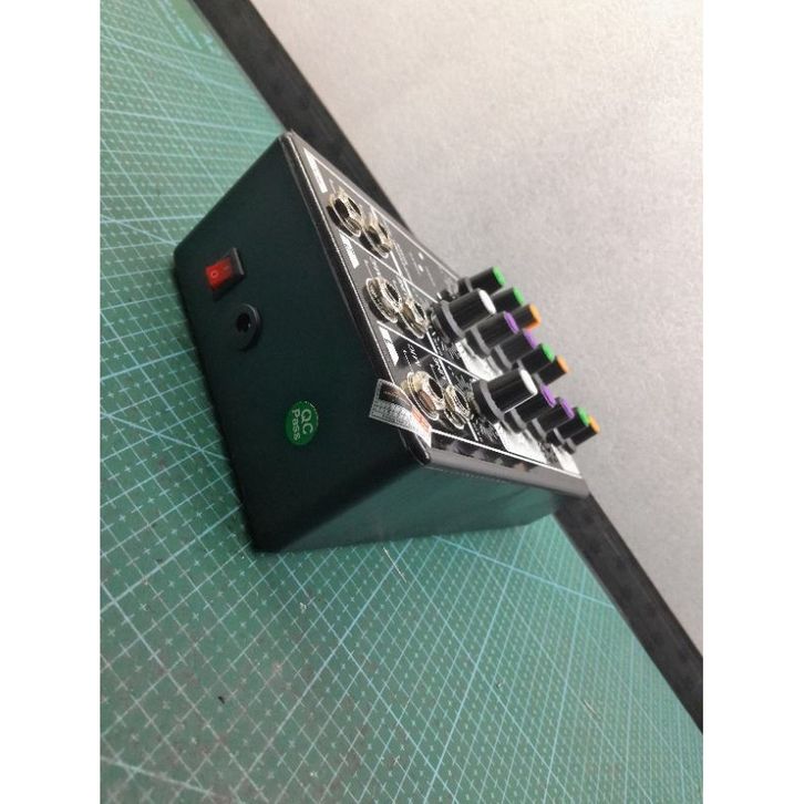 MIXER MINI 2 CHANNEL POT GAIN HIGH LOW EFX VOL REVERB DELAY MASTER SUDAH KOMPLIT ADAPTOR