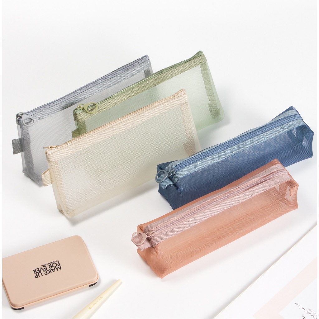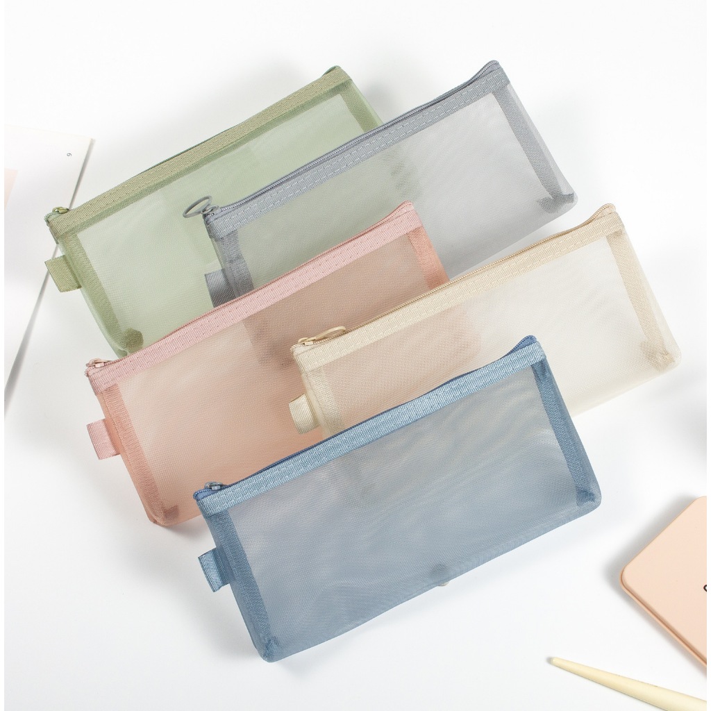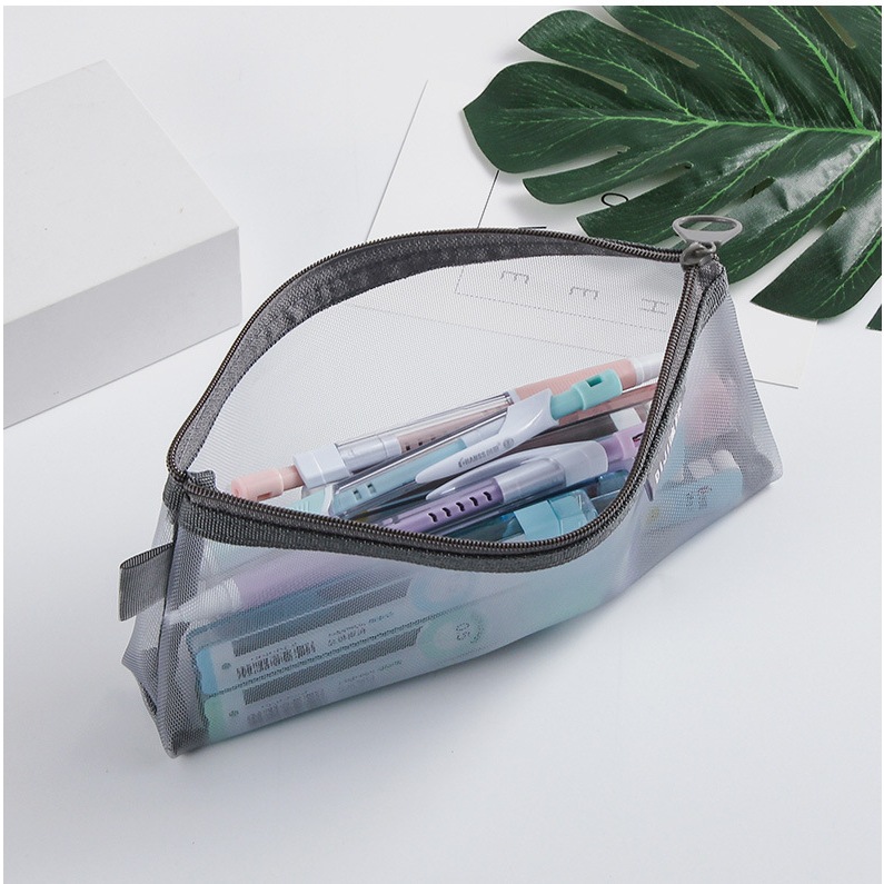 Tas Pensil Bersih Transparan Sederhana Tas Penyimpanan Ujian Siswa Tas Pensil Portabel Khusus Tas Alat Tulis Berkap