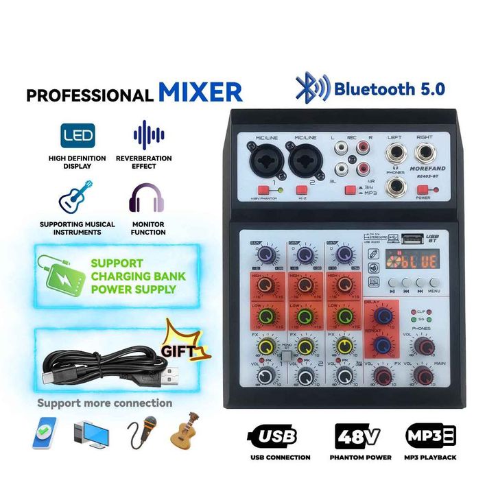CS4-CT6 Mixer Audio Profesional kecil 4 Saluran Mendukung pemutaran Bluetooth/UBB/PC/MP3 penggunaan