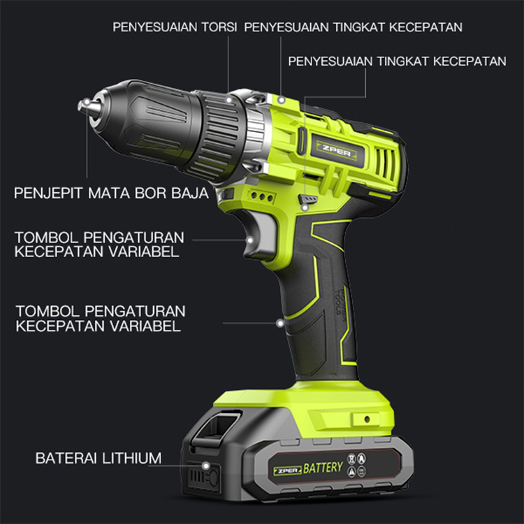 ZPER ZP011 Bor Listrik Mesin Bor Baterai Tangan Cordless Drill Battery Bor Tanpa Kabel Bor Lithium