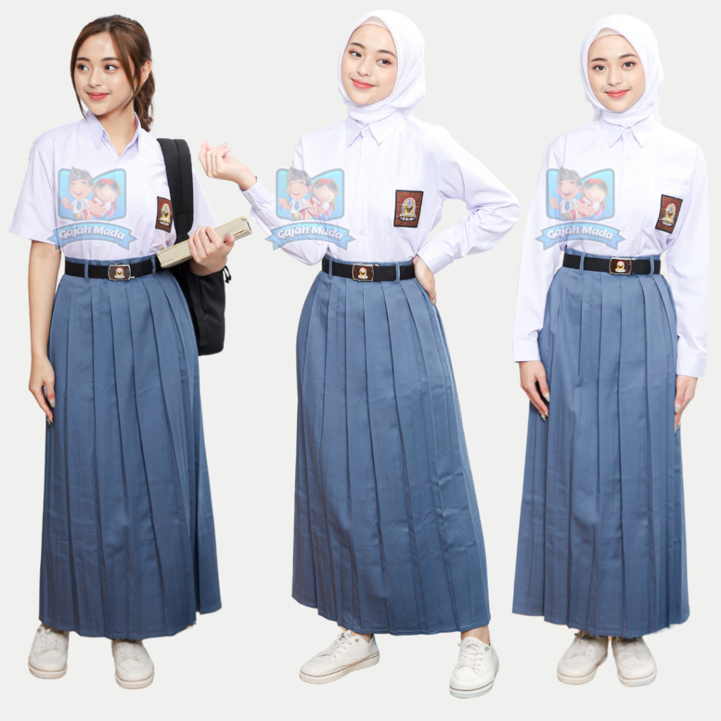 Rok Panjang Rempel SMA Abu-abu Bahan Nagata Drill Seragam Sekolah Premium - Gajah Mada Uniform