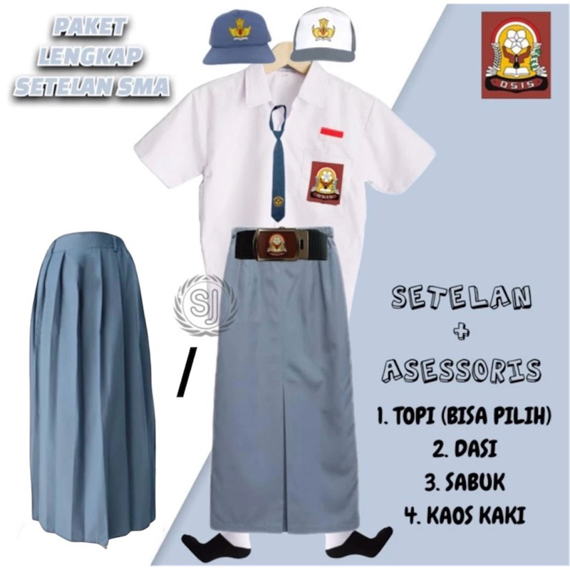 seragam sekolah paket setelan lengkap baju & rok span rempel SMA putri