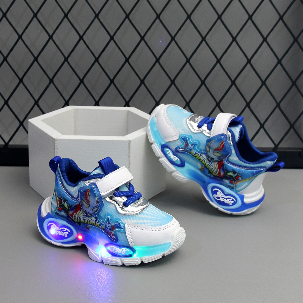 Sepatu Lampu Led Anak Lakilaki Sepatu Ultraman Merah Biru Ukuran 21-30 - FLT112
