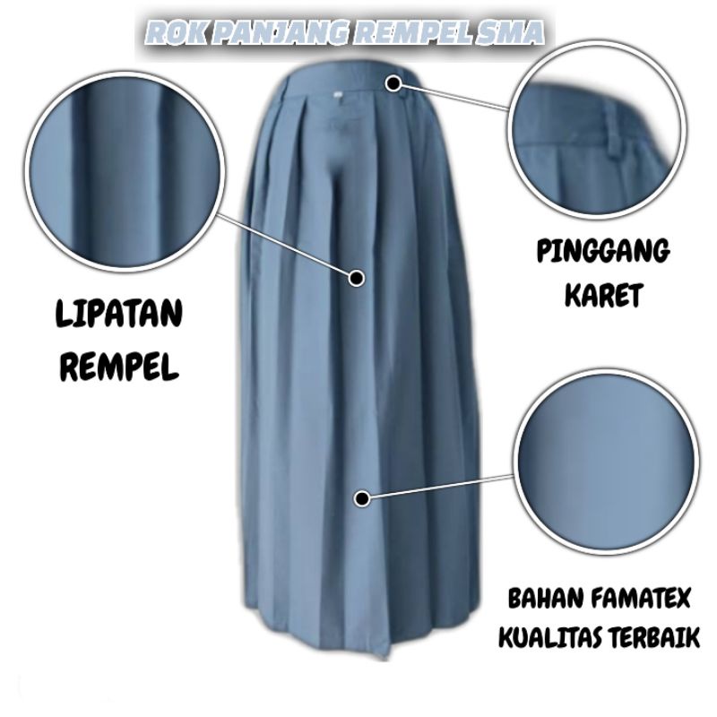 Seragam Sekolah Rok Rempel / Span Panjang Abu SMA