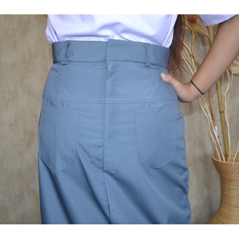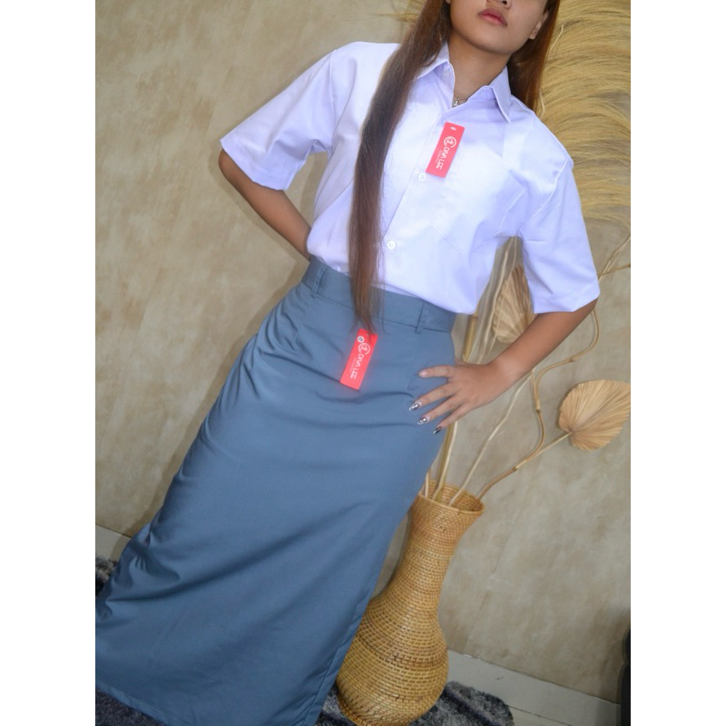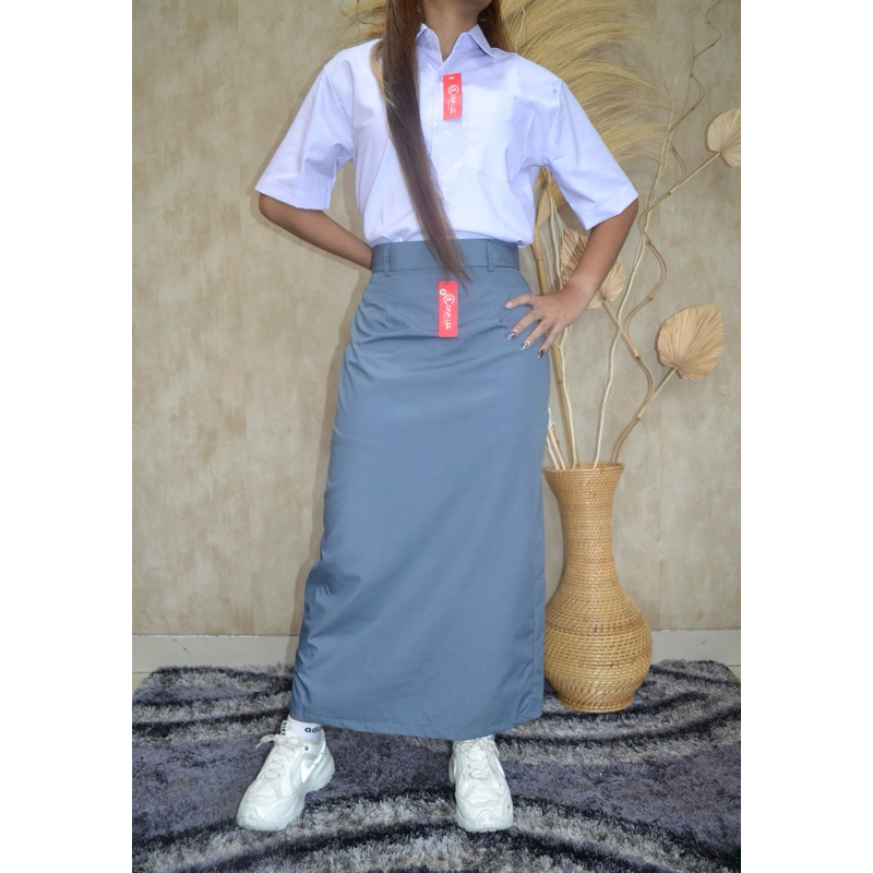Rok Seragam Sekolah SMA Span Panjang Kantong Belakang Warna Abu