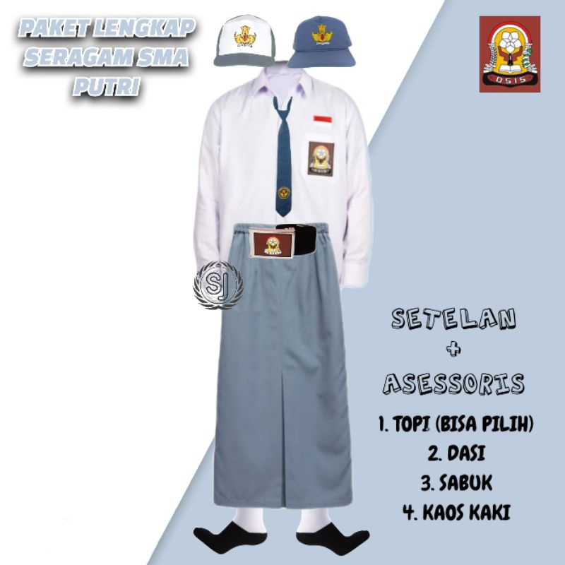 Seragam Sekolah Paket Setelan Baju & Rok Span SMA Super Lengkap