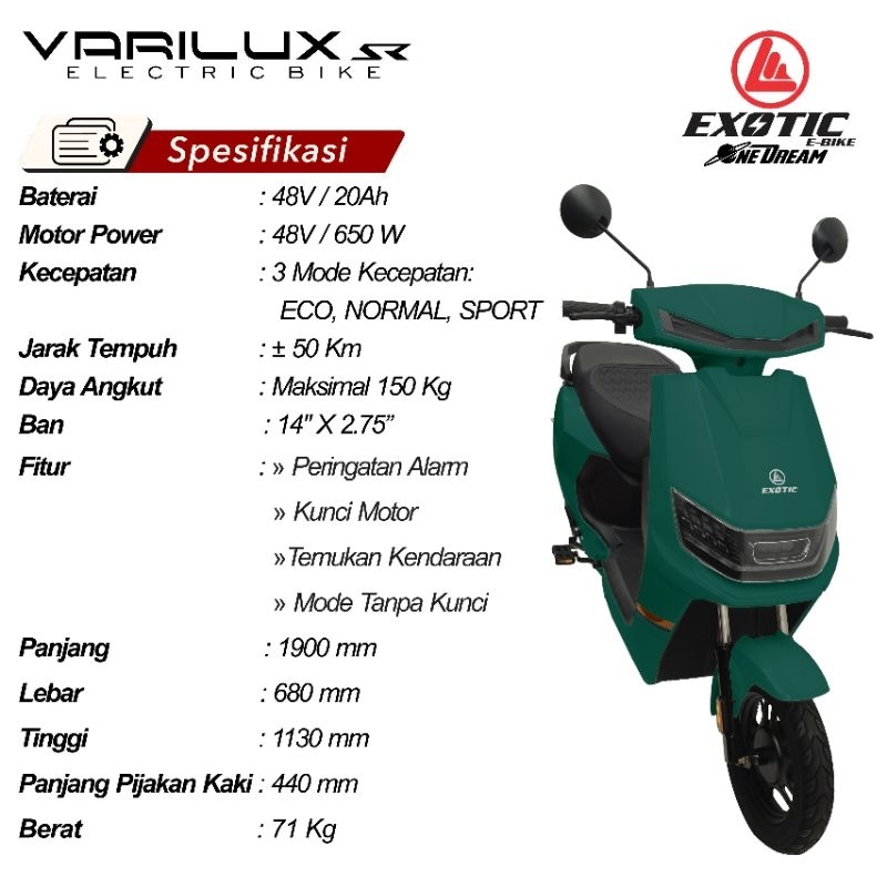 Sepeda Listrik Rasa Motor Listrik Exotic Varilux SR Power 650W, Baterai 20ah Terbaru Termurah Original Bergaransi Resmi