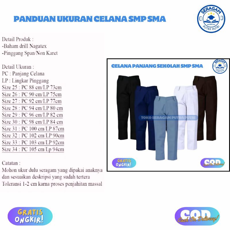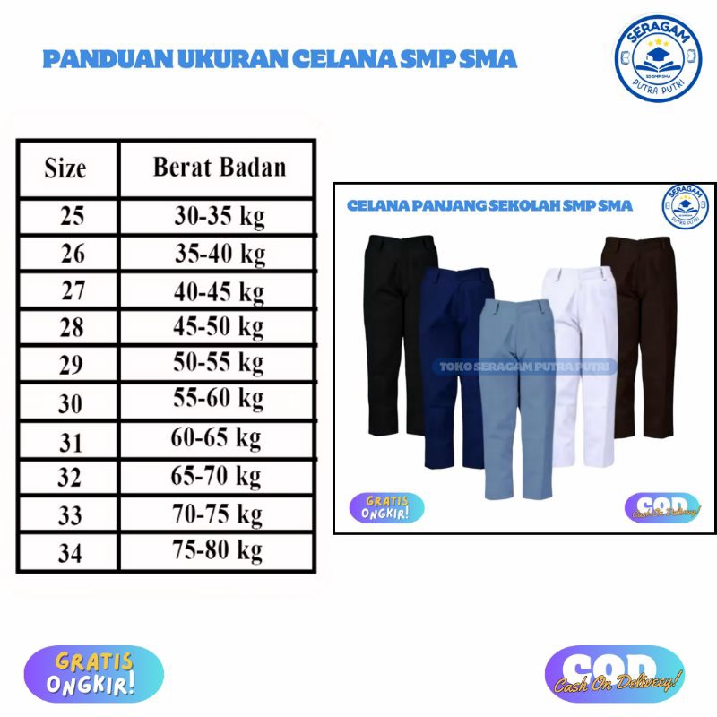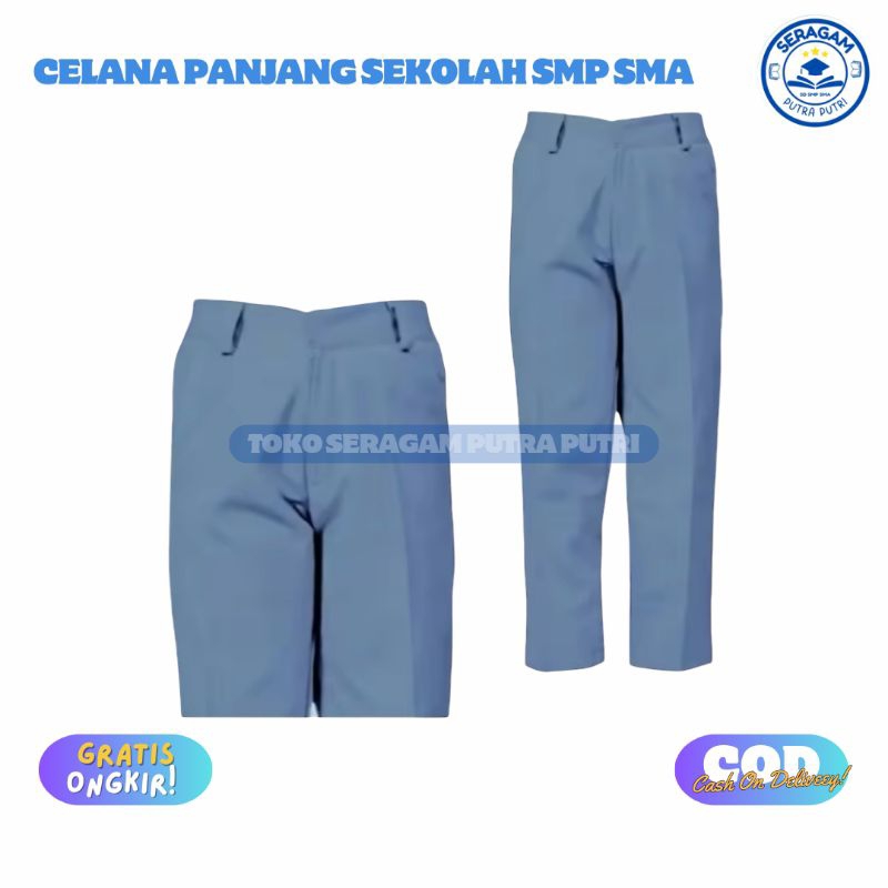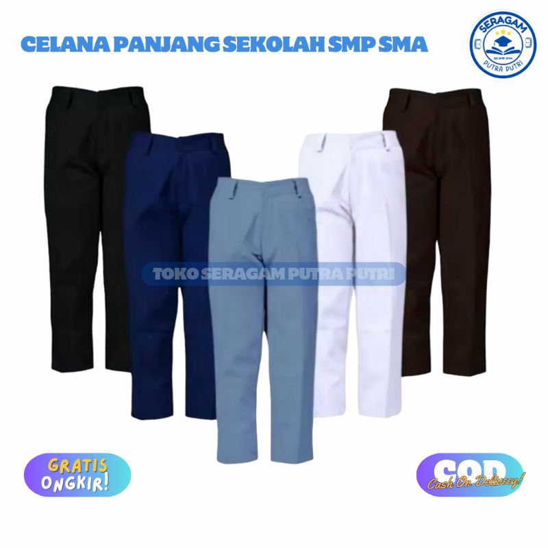 Celana Panjang Sekolah SMP SMA SMK Laki Premium Celana Sekolah Panjang Biru Abu Putih Hitam Coklat