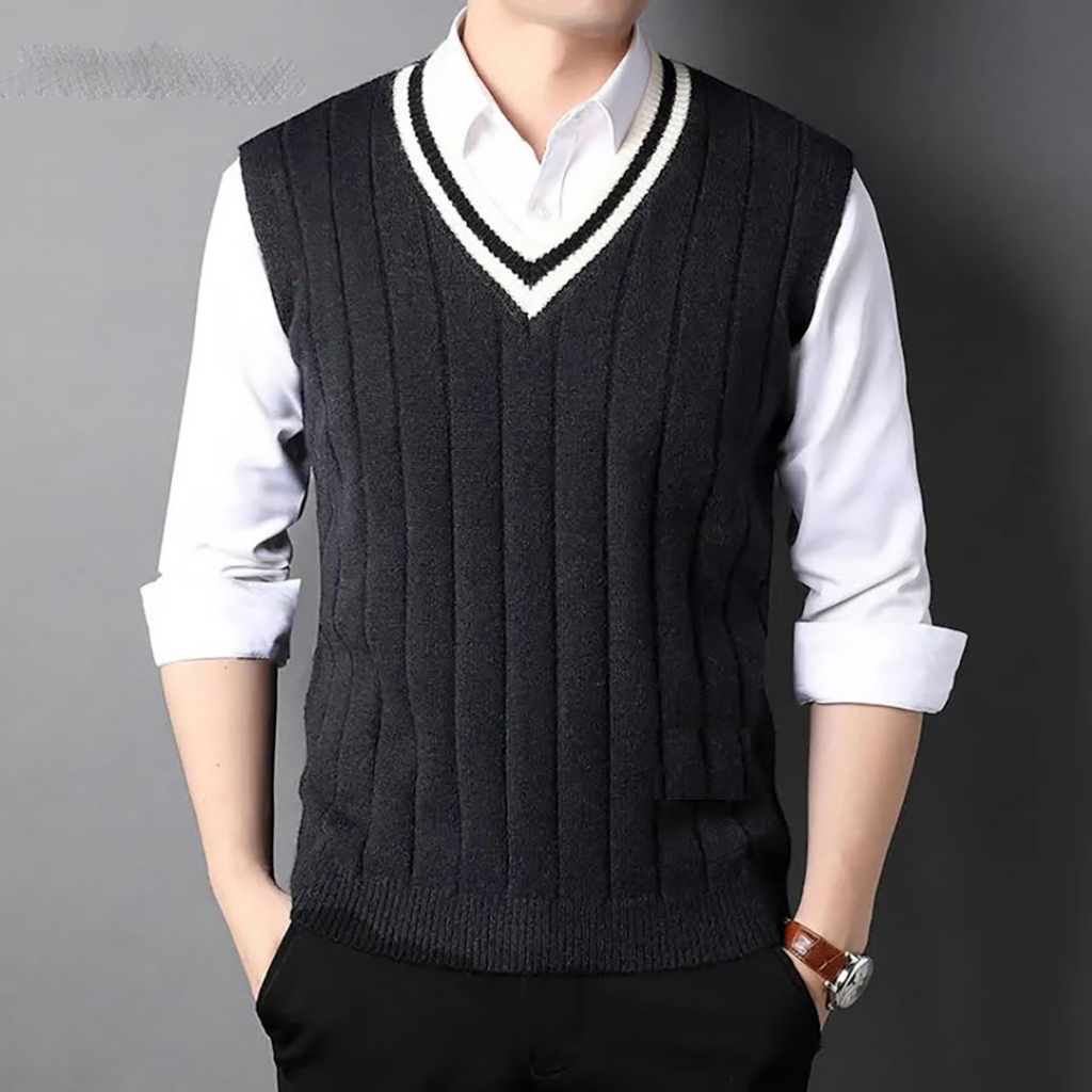 Rompi Or Outer Vest Rompi Rajut Vest Korea Vneck List Dobel Or Size S M L XL Rompi Rajut Pria Casual Kerja Sekolah