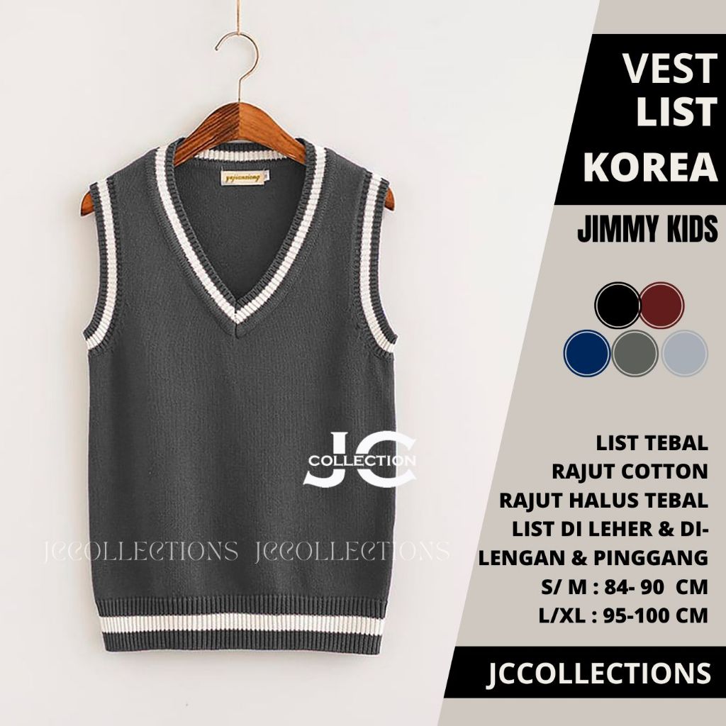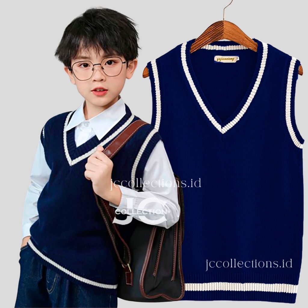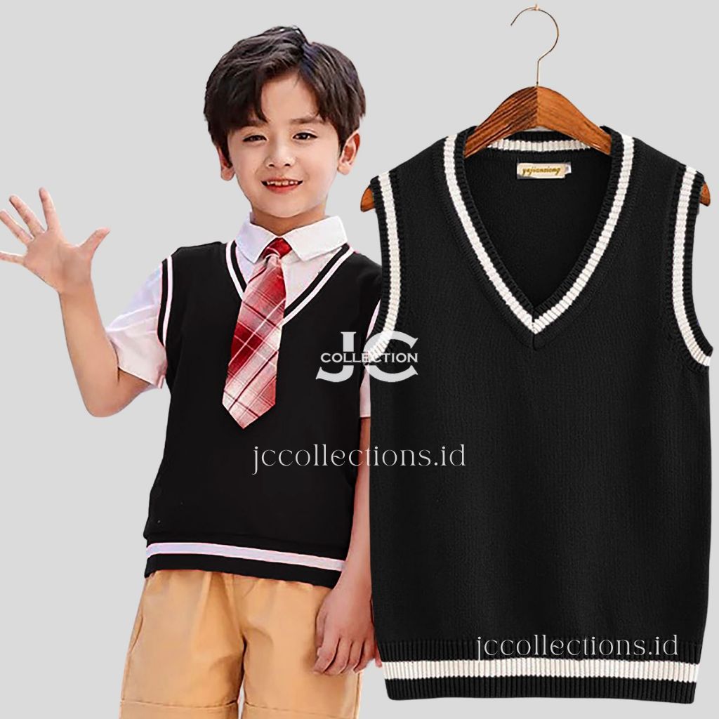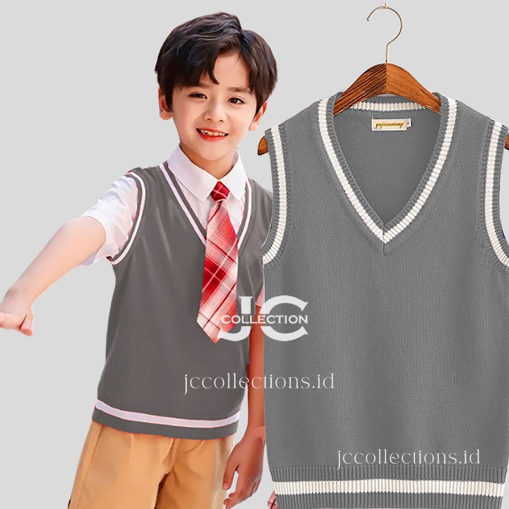 Rompi Rajut Anak Sekolah Unisex List Korean Style James Kids Vest Knit JCCollections
