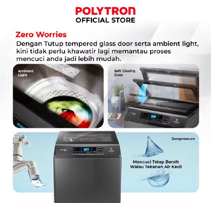 POLYTRON MESIN CUCI PAW 1028 MESIN CUCI POLYTRON 1TABUNG 10KG WASHING MACHINE FULL OTOMATIS TOP LOADING ZEROMATIC