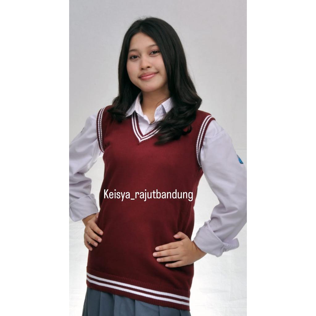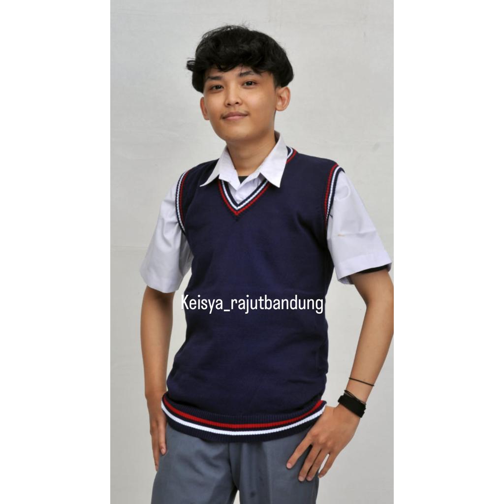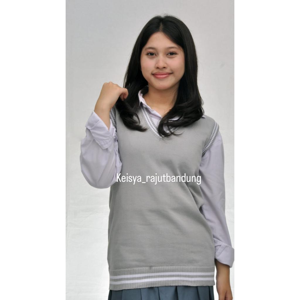 Keisya Vest Rompi Rajut Knit List Korea Bahan Tebal Premium/Seragam Sekolah SMP/SMA/Kantor/Unisex/M/L/XL/XXL/XXXL