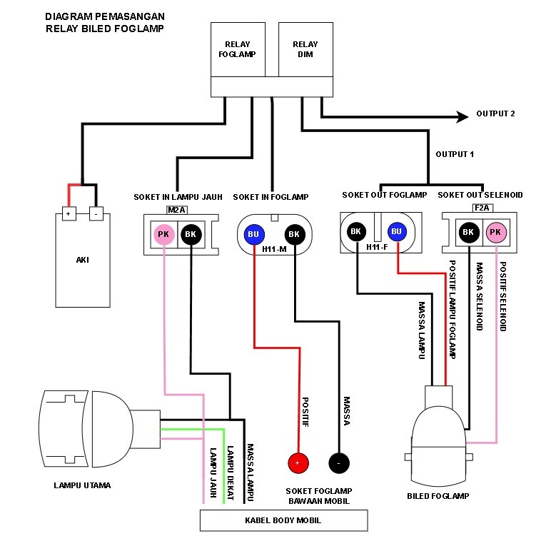 MK Racing Relay Set Biled Foglamp (Lampu Kabut Mobil) Serat Braided Sleeve Soket H11 Support Passbeam Lampu Jauh Dekat