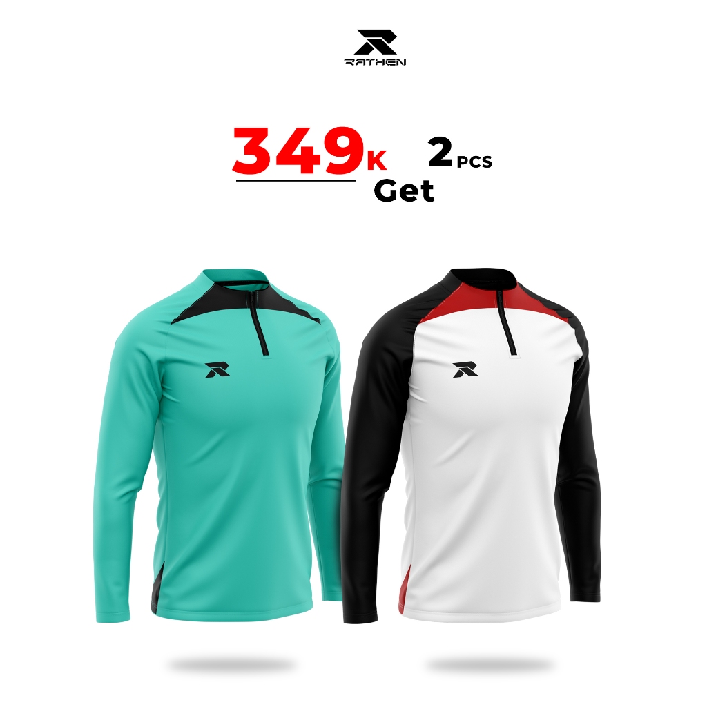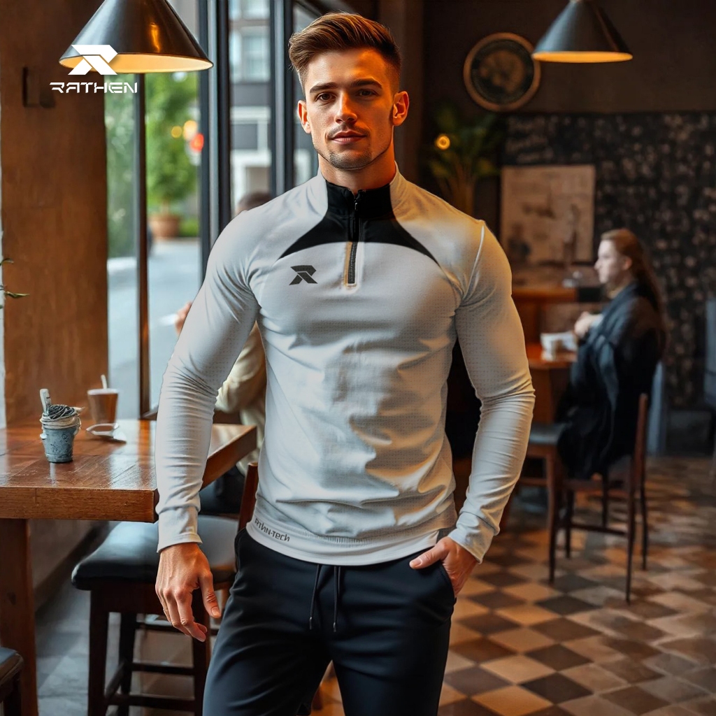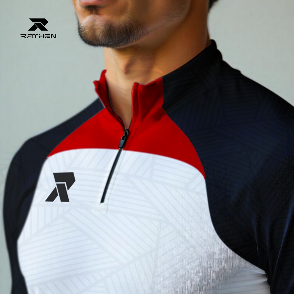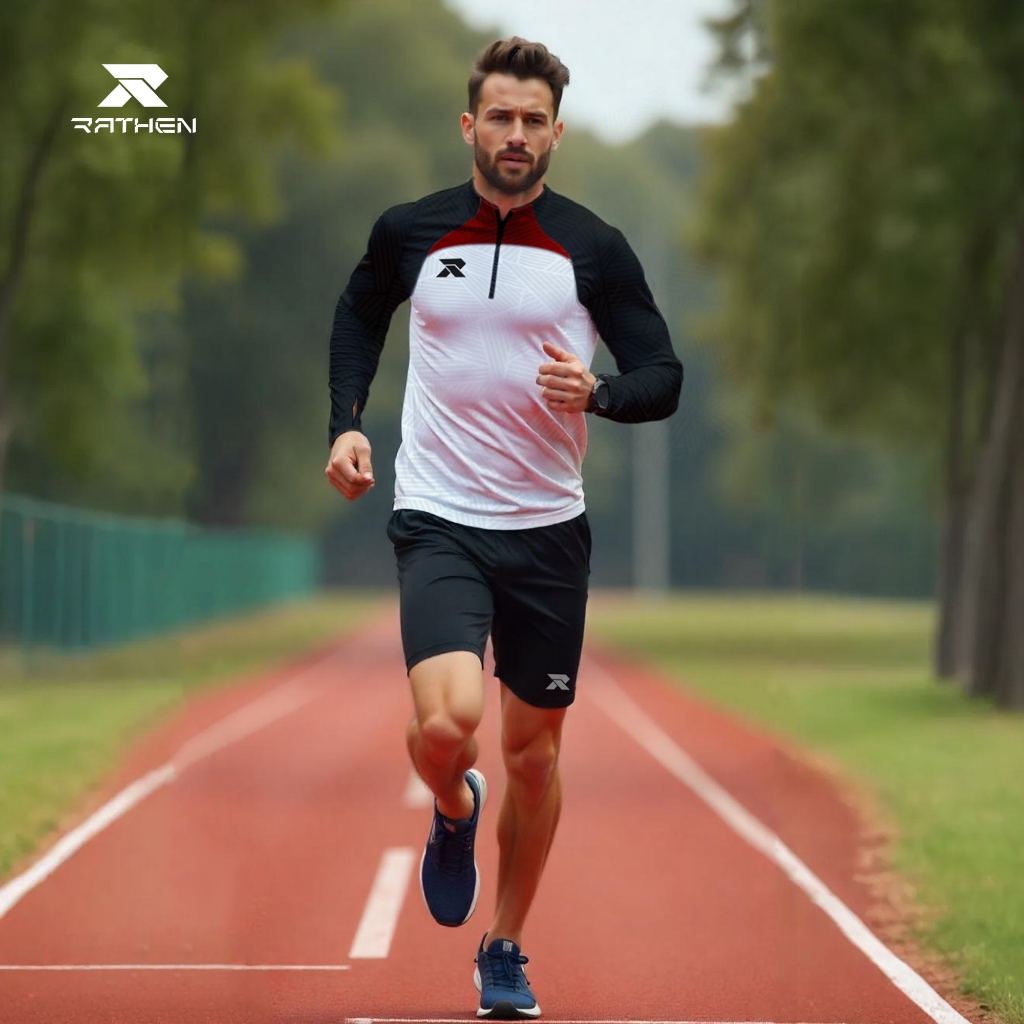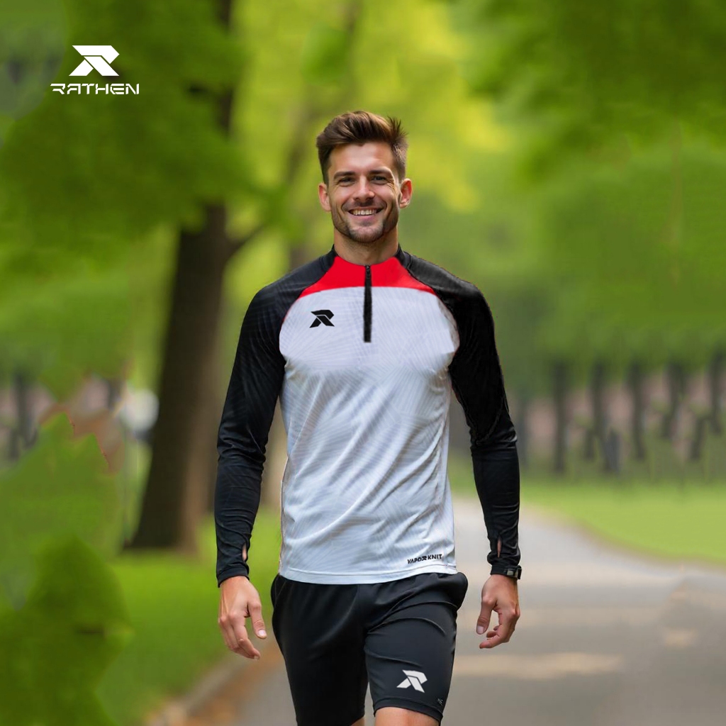 RATHEN - Midlayer White Baju Olahraga Running Football Gym Pria Strech dan Breathable