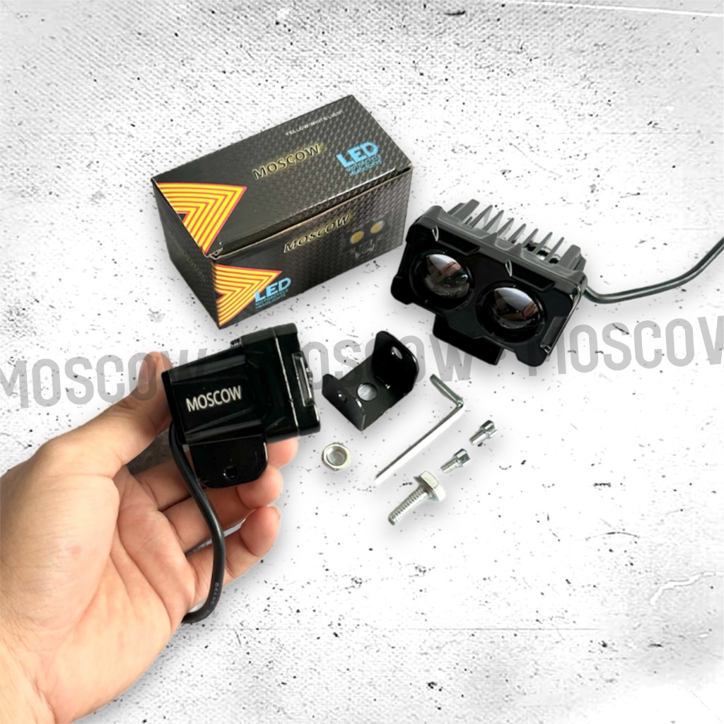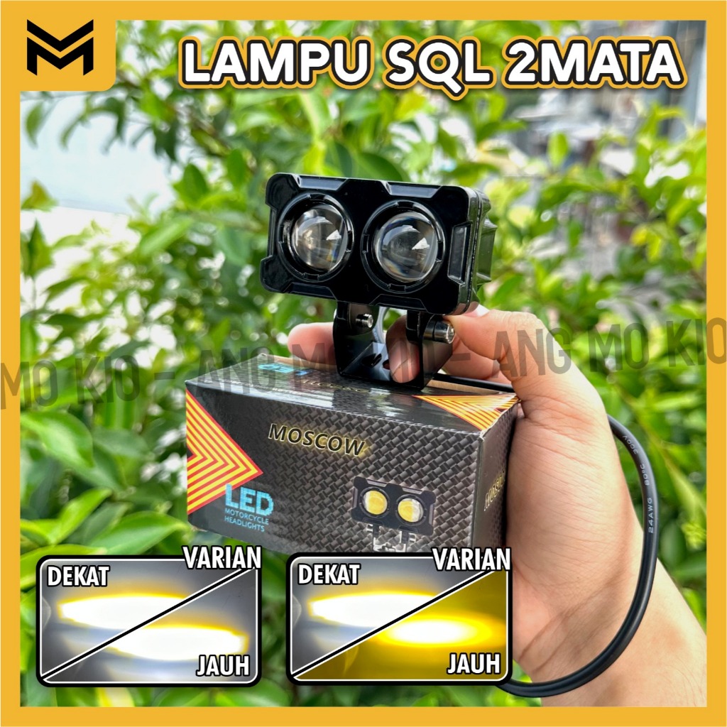 LAMPU TEMBAK LASER SQL 2 MATA MODE HIGH AND LOW ORIGINAL BRAND MOSCOW UNIVERSAL COCOK UNTUK MOTOR DAN MOBIL 2 WARNA PUTI
