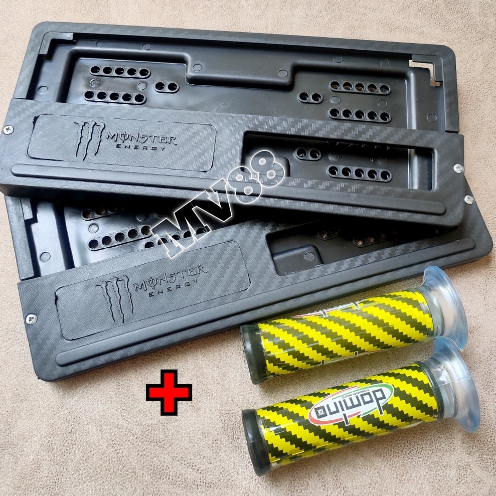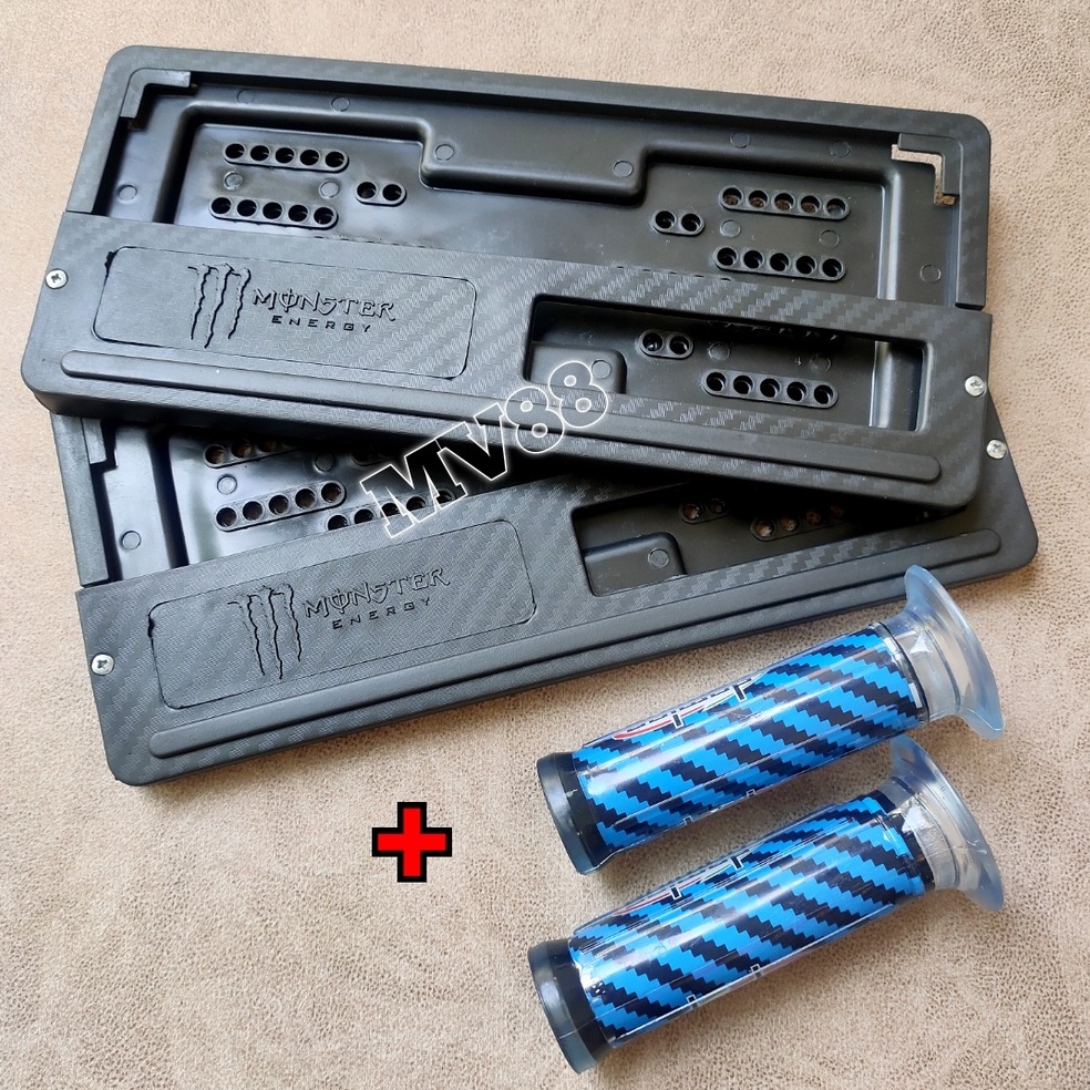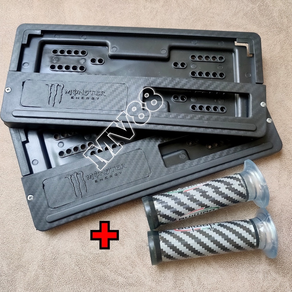 Paket Dudukan Plat Nomor Universal + Handgrip Karbon Motor