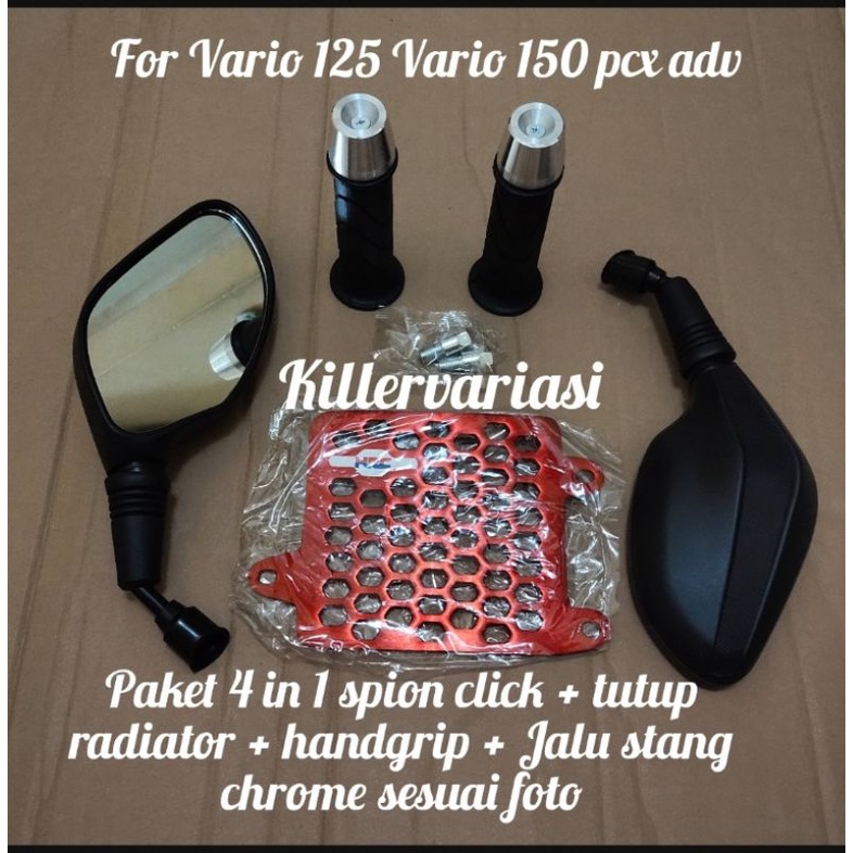 Paket Spion Click + Tutup Radiator Vario 125/150 ADV PCX + Handgrip + Jalu Stang Chrome Harga Sepaket