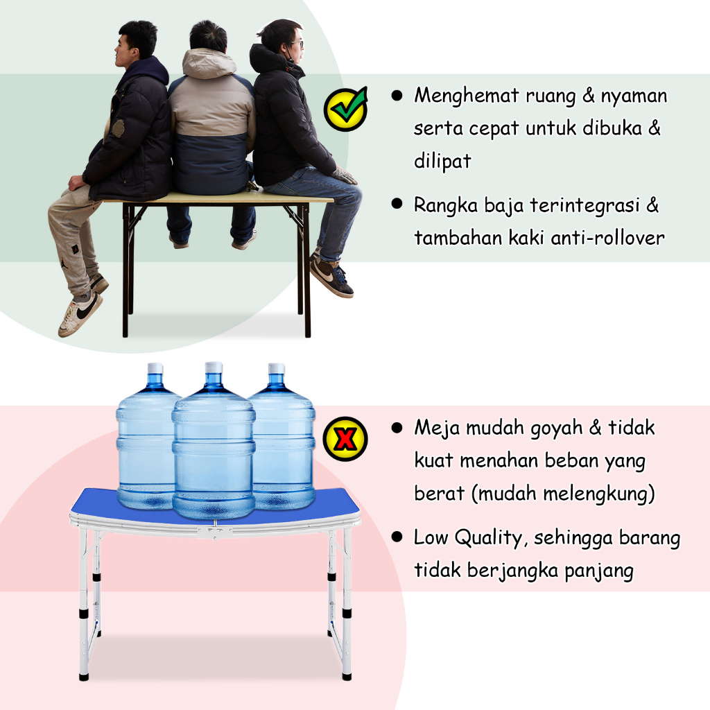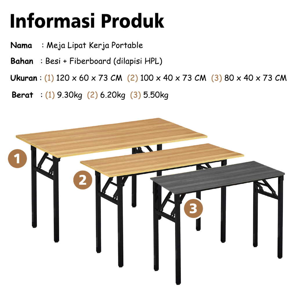 Meja Lipat Portabel Kayu Persegi Panjang Meja Kerja Kantor Meja Belajar dan Meja Makan