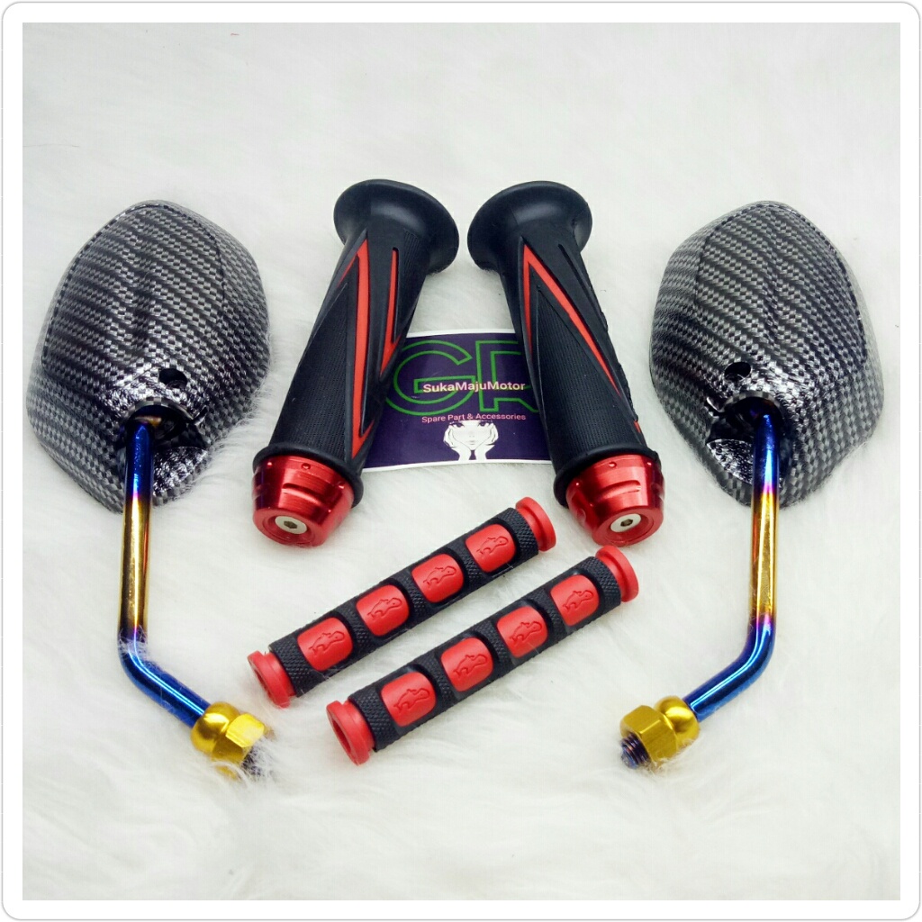 Paket Spion Karbon Tangkai TwoTone + Handle Rem Domino Bulat + Handgrip + Jalu Panah Polos Universal Honda