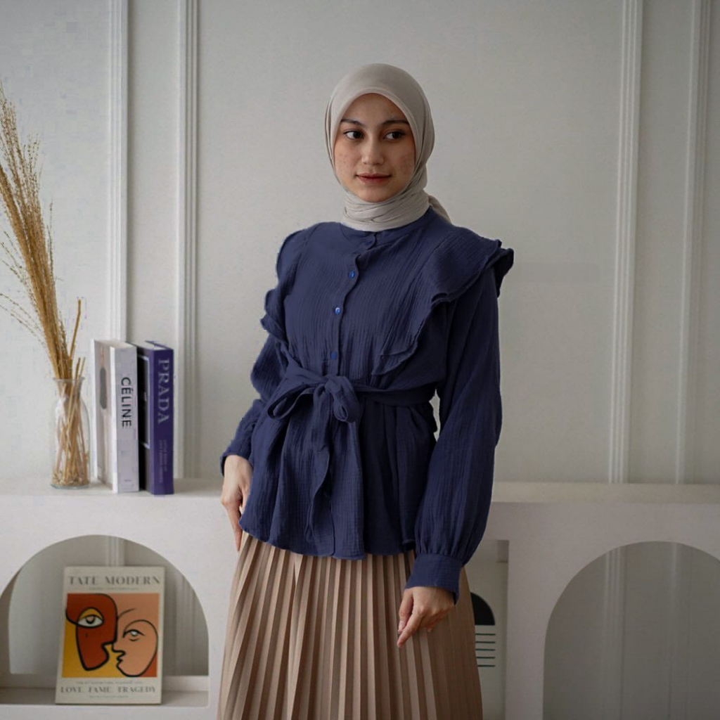 Orimoza Blouse Ruffle Ladycrush Wanita Yumira Elegan dan Modis Cocok untuk Acara Formal maupun Santai