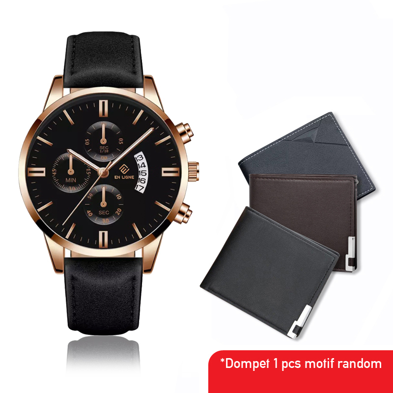En Ligne Jam Tangan Pria Set Jam Tangan Gift Dompet Set Kado Ultah