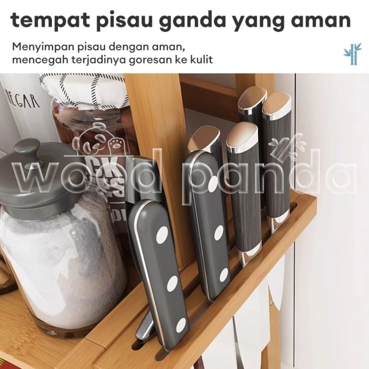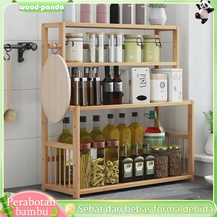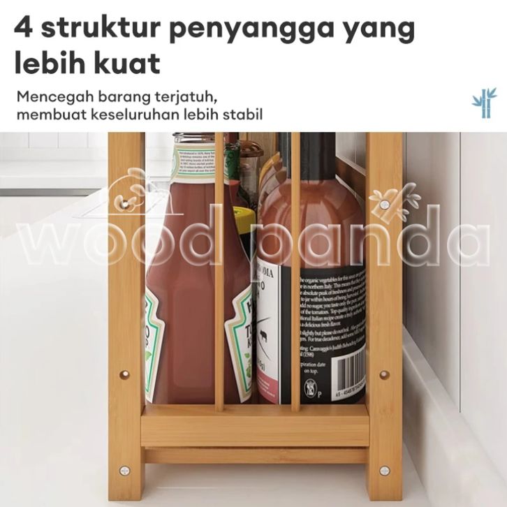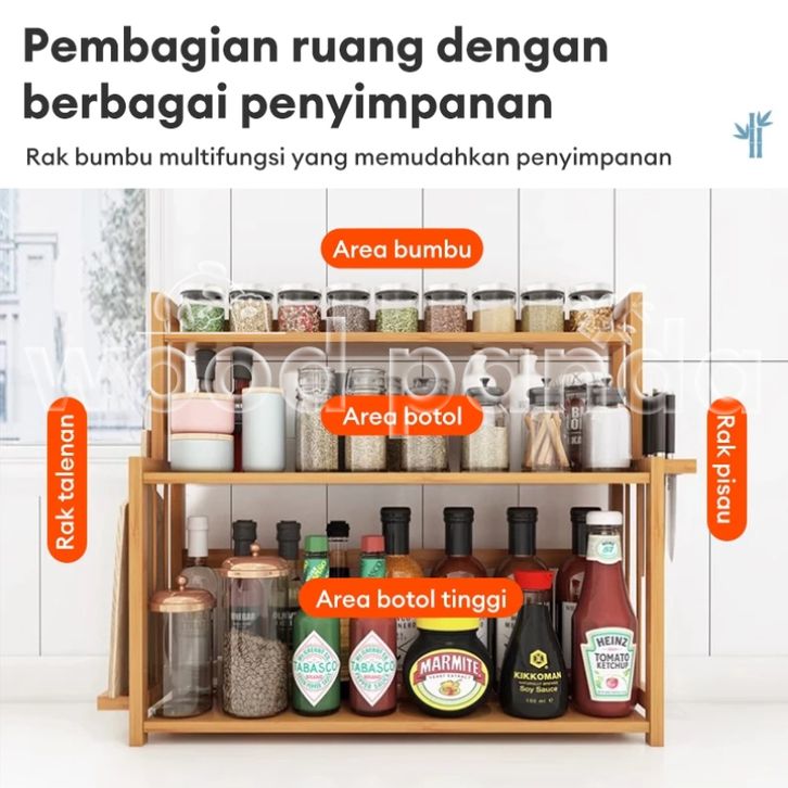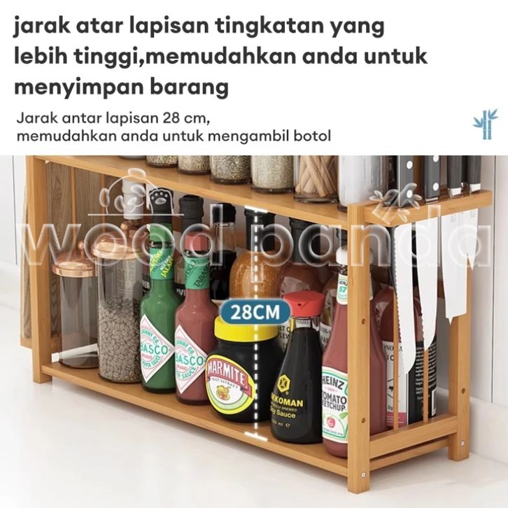 Rak Dapur Serbaguna Rak Bumbu Dapur Tempat Bumbu Kayu 2 Susun Bambu Rak Botol Bumbu Rak Penyimpanan