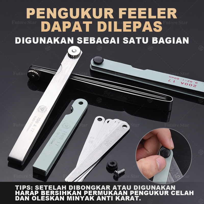 17 Combination Feeler Gauge Set Metric / Kunci Stel Klep / Fuller Setelan Klep / 14 s Alat Ukur Celah Besi 0.05-1mm Gap