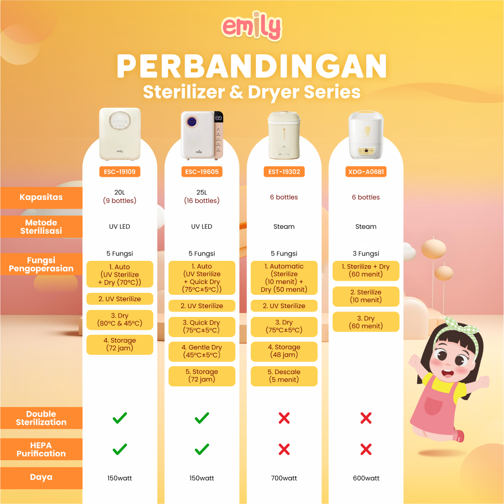 Emily UV Sterillizer & Dryer 25L 150W Sterillizer Baby / Sterillizer Botol Bayi Pengering Alat Bayi