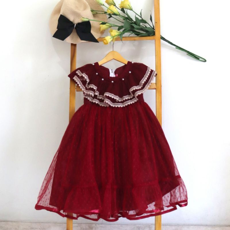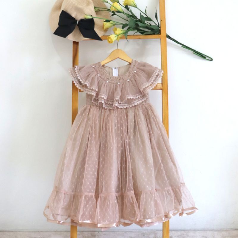 Baju Gaun Anak Perempuan Salsa Dress Renda Tingkat Kombinasi Tile Polkadot Usia 3-10 Tahun