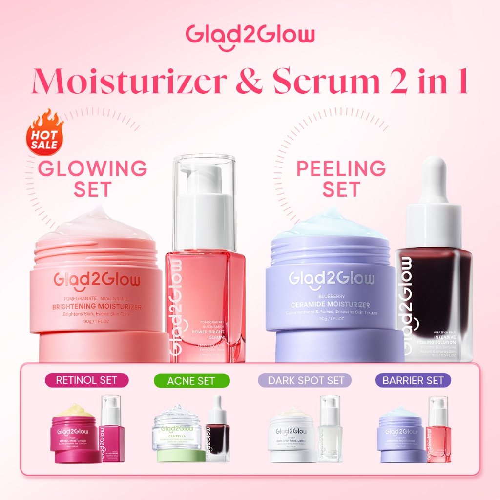 [ 2in1 ]Glad2Glow 2pcs bundle Skincare Paket - Moisturizer+Serum Glowing Anti-acne Dark spot Barrier Blueberry Ceramide